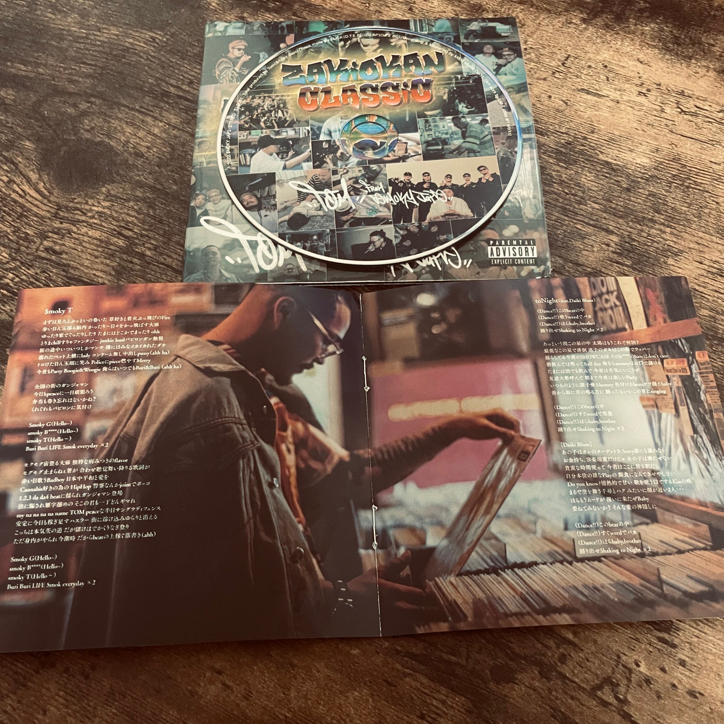 東海を拠点に活動するHIP HOP crew $moky japsから2022年7月に発表されたTOMの1stALBUM【ZAKIOKAN CLASSIC】のCD販売開始‼︎